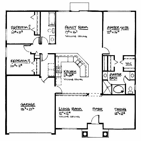 This home has living and dining rooms on either side of the foyer entrance. The kitchen nearby has ample counterspace for preparing meals while overlooking the family room with volume ceiling. The master suite includes a walk-in closet and master bath with dual vanities, tub and separate shower. Two more bedrooms share a bath.