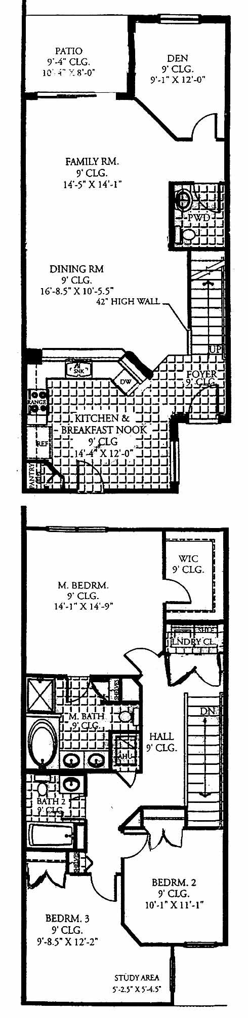 This townhome has a large kitchen with pantry and breakfast nook to one side of the foyer entrance. The dining room overlooks the family room with patio access. The den nearby makes a nice home office. The second-floor master bedroom includes a walk-in closet and master bath with double vanity, tub and separate shower. Two more bedrooms share a bath.