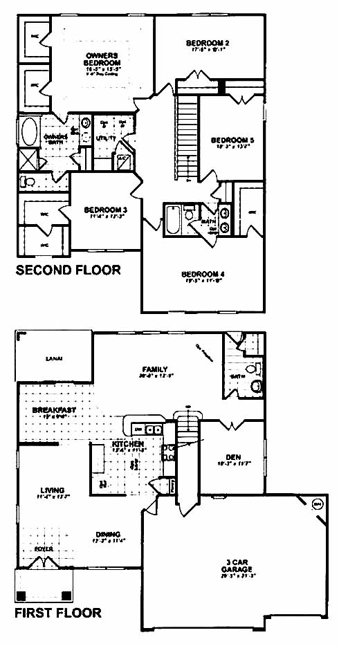 Beautiful two-story home featuring living and dining rooms at the foyer entrance. Next is the kitchen with pantry and optional island workspace that leads to the breakfast room with lanai access. Plenty of room in the family room means everyone can comfortably gather on movie nights. The nearby den makes a great home office. The second-floor owner's bedroom includes his and her walk-in closets and a luxurious master bath. Four more bedrooms share a bath and have ample closetspace.