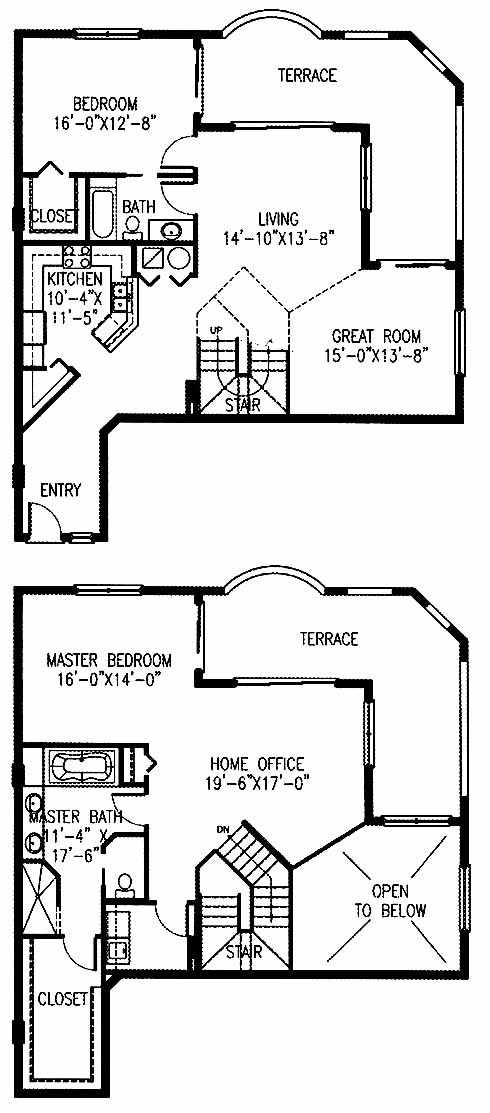 Two level condominium home with spacious living and great rooms where you can easily entertain guests. Access the terrace from both rooms as well as the bedroom with walk-in closet and private access to a bath. The kitchen at the entry has ample counterspace for preparing meals. The second level is devoted to the master suite and includes a private terrace, an oversized walk-in closet, a home office area and a master bath with double vanity, tub and separate shower.
