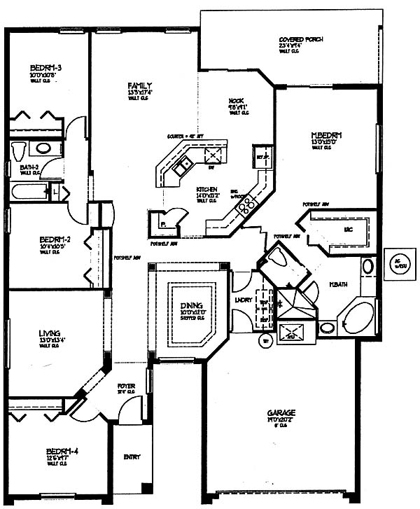 Formal dining and living rooms, along with a family room that borders the breakfast nook(that open to a covered porch) and kitchen. The master bedroom also opens to the porch. The master bath features a big walk-in closet and a roman tub with separate shower. Fourth bedroom up front may be used as a study or den. Optional Pool!