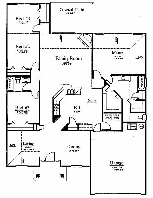 This home has living and dining rooms on either side of the foyer entrance. The nearby kitchen includes a pantry and bar-top while opening into the nook area. The family room with access to the covered patio and the optional fireplace is a nice spot to entertain guests. The master bedroom includes his and her walk-in closets and a master bath. Three more bedrooms share a bath.