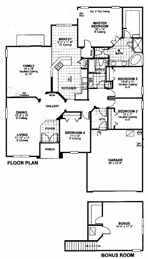This home has living and dining rooms to one side of the foyer entrance. The gallery leads to the family room with access to the optional lanai outside. The kitchen has a pantry and wrap-around counter that overlooks the breakfast room. The master bedroom includes a walk-in closet and master bath wit double vanity, tub and sep shower. Three more bedrooms share a bath. The second-floor bonus room makes a nice fitness area or home office.