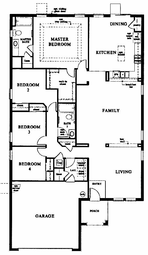 This home has spacious living and family rooms separated by a low wall. The kitchen in the back incldues a pantry and breakfast bar area. The master bedroom has a large walk-in closet and master bath with linen closet. Three more bedrooms share a bath.