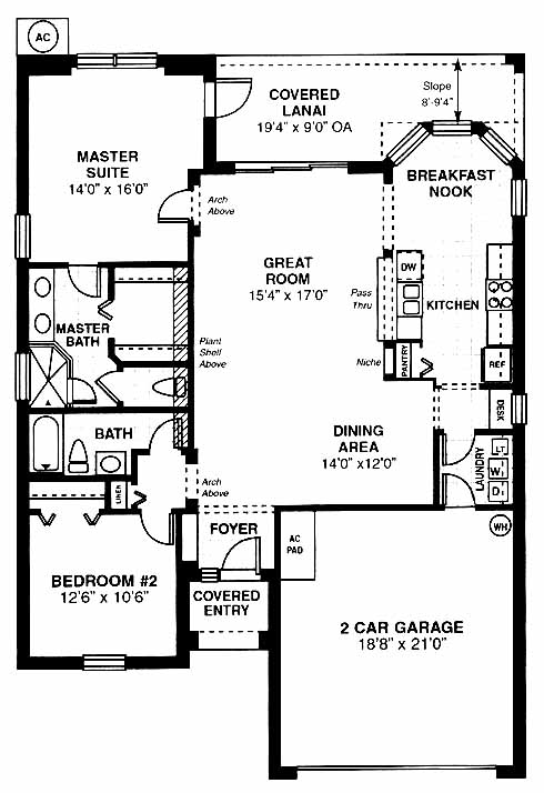 This home features a spacious great room that is perfect for entertaining guests and includes access to the covered lanai. The kitchen has a pantry and desk area. The dining area and breakfast nook are nice options when serving meals. The master suite in the back includes private access to the lanai, a walk-in closet and a master bath with double vanity. A second bedroom is located at the front of the home.