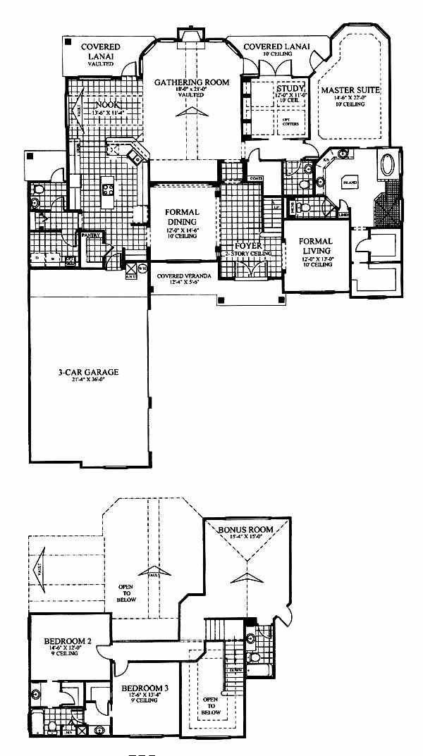 The tiled foyer leads you past the formal living and formal dining rooms to the huge gathering room with vaulted ceiling. You'll pass the study and powder room on your way to the master suite with access to the covered and lanai and the master bath with dual vanities and island. Open to the gathering room is the huge tiled kitchen with breakfast nook. Upstairs you have a bonus room with bath and your 2nd and 3rd bedrooms with Jack and Jill bath. Truly an impressive home.