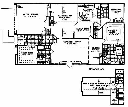This home has a guest suite to one side of the foyer entrance that provides plenty of privacy with its own bath and access to the covered porch. The gallery leads to the spacious gathering room with fireplace where you can entertain friends and family comfortably. The kitchen nearby has a walk-in pantry while overlooking the dining room. The owner's suite includes a walk-in closet and master bath with double vanity, tub and separate shower. Another bedroom has close access to a bath and the laundry room.