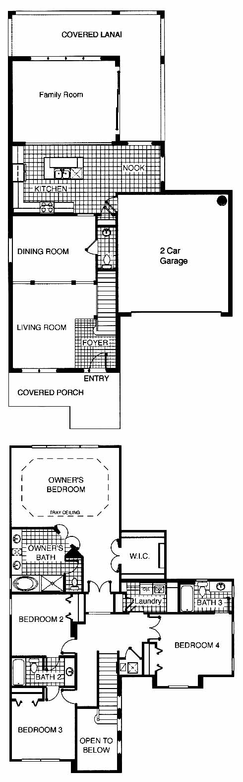 This home has a large family room in the back with access and views of the covered lanai. Living and dining rooms are at the front of the home. Next is the kitchen with pantry that opens into the nook area. The second-floor owner's bedroom includes a walk-in closet and owner's bath with double vanity, tub and separate shower. A second bedroom also has a private bath, making it the perfect guest suite. Two more bedrooms share a Jack-n-Jill bath between them.