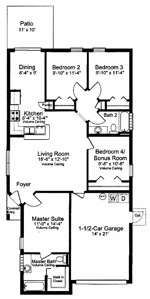 A master suite at the front includes a walk-in closet and master bath. Three more bedrooms share a bath. The kitchen with pantry opens into the dining room with patio access. The large living room is perfect for entertaining guests. Volume ceilings throughout.