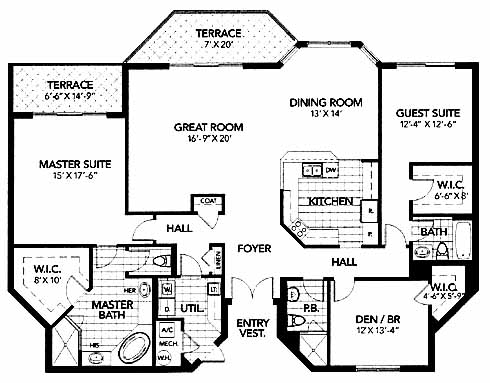 Spectacular condominium home with a large great room that is perfect for entertaining guests and includes access to the terrace. The dining room leads to the kitchen with pantry and ample counterspace for preparing meals. The master suite includes a walk-in closet, private terrace and a master bath with dual vanities. A guest suite on the opposite side of the home has a private bath as well. A third bedroom makes a nice den or home office if needed.