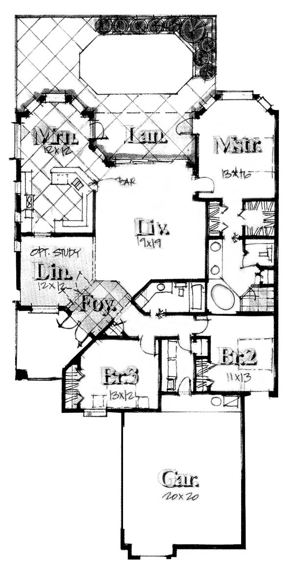 This ingenious floor plan offers balanced bay windows in the Morning Room and Master Bedroom with views across the Lanai and/or optional pool. A formal Foyer welcomes guests to the living room, dining room and sequestered Guest Suite with two bedrooms and bath. Extra touches include an open kitchen with views to the lanai, a Master bath with a private Water Closet, as well as entry through the utility room from the two-car garage.