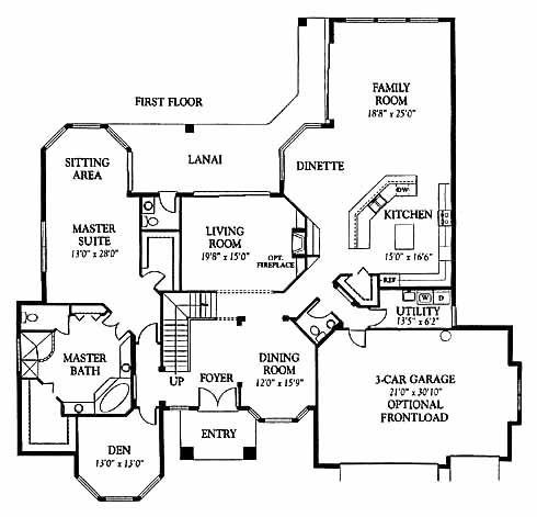This two-story home has a spacious family room in the back that is sure to be a popular spot for everyone with its optional entertainment center and views of the lanai. The kitchen has a walk-in pantry, island workspace and overlooks the dinette. The formal living room lets in plenty of natural light with its three-panel sliding door. The first-floor master suite includes a sitting area, his and her walk-in closets and luxurious private bath with garden tub and separate shower. A den at the front of the home makes for a nice office. The second floor has three more bedrooms, including one that has a private bath and walk-in closet. The loft area is perfect for use as a fitness area or kids play area.