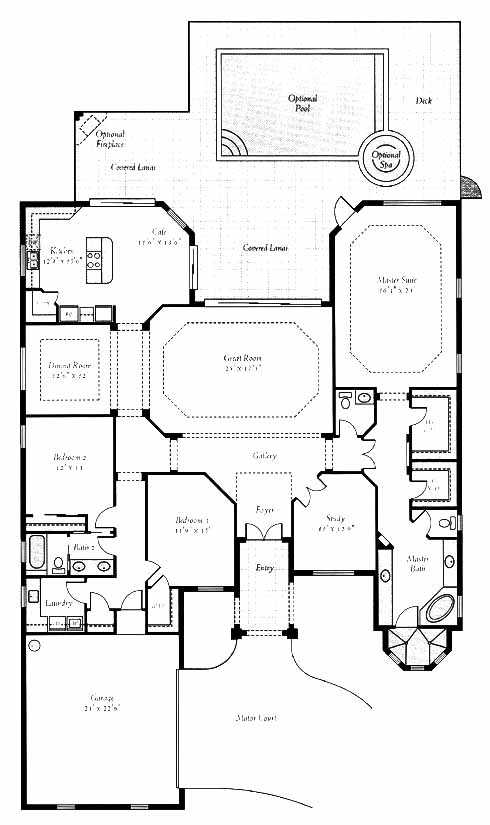 This home has a study and one bedroom at either side of the foyer. The large great room includes access to the lanai and has plenty of room for everyone. The master suite includes his and her walk-in closets, luxurious private bath and private access to the lanai. A bath is shared by the two bedrooms on the opposite side of the home. Eat your meals in either the dining room or cafe area. Preparing food will be simple in the nicely designed kitchen that includes an island workspace and walk-in pantry.