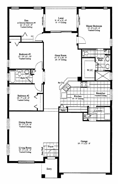 Living and dining rooms can be found to one side of the foyer entrance, both having a vaulted ceiling. A large kitchen with pantry and ample counter space opens into the breakfast area and also has access to the laundry room. The great room is centrally located and will be a popular spot for gathering. The master suite includes a walk-in closet and private bath. Two bedrooms on the opposite side of the home share a bath between them. A den at the back makes a nice home office or reading room. Access to the lanai from the great room with options for access from the den and master suite.