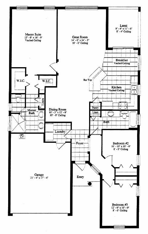 This home has a spacious great room at the back of the design that is nicely sized and has three large windows that let in a lot of natural light. The kitchen includes a bar top and pantry and opens into the breakfast area. The dining room has views of the great room and is just a few steps away from the kitchen. A laundry room is to one side of the foyer. Two bedrooms and a spacious bath are on the other side. The master suite includes a vaulted ceiling, his and her walk-in closets and a luxurious private bath.