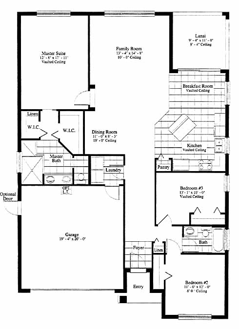 This home has two bedrooms at the front that share a bath, both with ample closet space. A large family room at the back of the home is the perfect spot for entertaining guests. The kitchen includes a pantry, island workspace and opens into the breakfast room. Access the lanai through sliding doors in the breakfast room. The dining room is close by and has views of the family room. The master suite includes his and her walk-in closets and a private bath with double vanity.