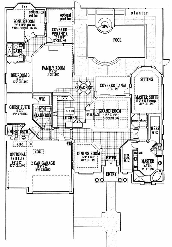 Aurora award wining home with classic architectural detailing. Bonus room, covered veranda, grand room and family room and caged pool. Gated maintenance free golf community.