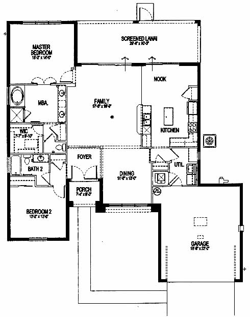 This home has a formal dining room to one side of the foyer entrance that overlooks the large family room with lanai access. The kitchen has a pantry and island workspace while opening into the nook area. The master bedroom includes a walk-in closet, linen closet and a master bath with double vanity, tub and separate shower. A second bedroom at the front of the home has close access to a bath.