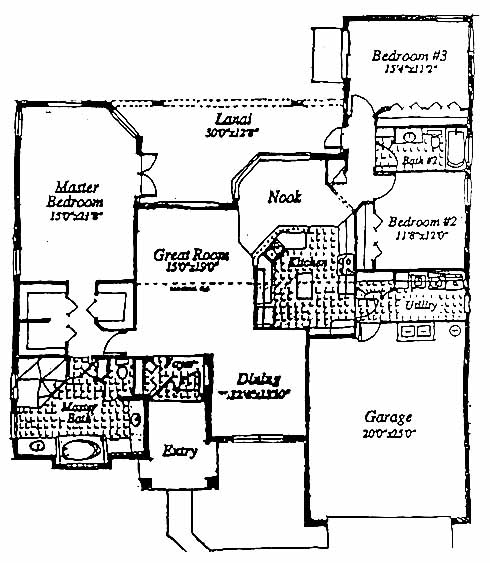 This home features a large master bedroom that includes private lanai access, his and her walk-in closets and a luxurious master bath with dual vanities, soaking tub and oversized shower. Two bedrooms on the opposite side of the home share a bath between them. The formal dining room is located to one side of the foyer entrance and it overlooks the great room with lanai access. The nook leads to the kitchen with walk-in pantry and wrap-around counter.