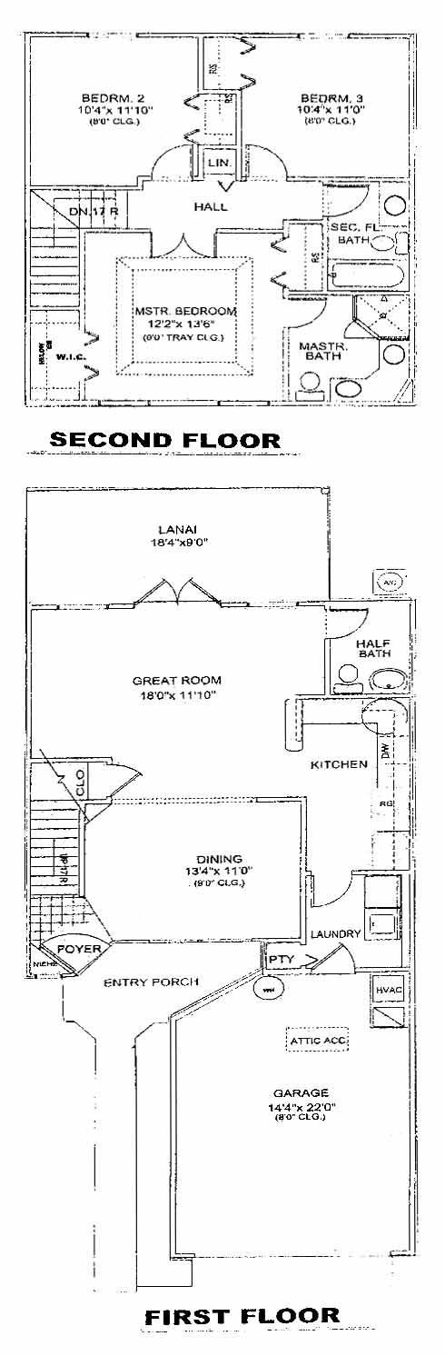 This townhome opens into the dining room with views of the great room in the back. Access the lanai from the great room while comfortably entertaining guests. The nearby kitchen includes ample counterspace for preparing meals. The second-floor master bedroom includes a walk-in closet and master bath with double vanity. Two more bedrooms share a bath.