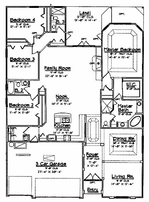 This home has formal living and dining rooms to one side of the foyer entrance. The nearby kitchen has a pantry and island workspace while overlooking the nook area. The family room with lanai access and optional fireplace is a nice area for relaxing on the weekend. The owner's retreat includes private lanai access, a walk-in closet and a master bath with dual vanities, soaking tub and separate shower. Three more bedrooms and two baths allow for maximum privacy.