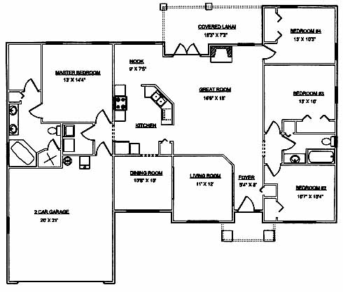 This home has formal living and dining rooms to one side of the foyer entrance. The spacious great room with fireplace is sure to be a popular gathering spot. Also access the covered lanai from the great room. The nook leads to the kitchen with pantry and ample counterspace for preparing meals. The master bedroom includes a walk-in closet and master bath with double vanity, tub and separate shower. Three bedrooms on the opposite side of the home share a bath.