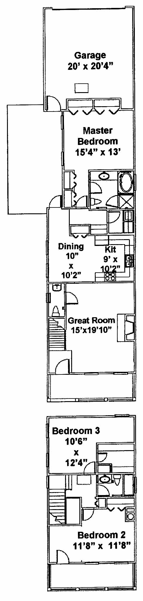 This two-story home opens into the great room with fireplace where everyone will gather on chilly nights. The dining room leads to the kitchen with pantry. The first-floor master bedroom in the back includes his and her closets and a master bath. The second floor has two more bedrooms and a shared bath.
