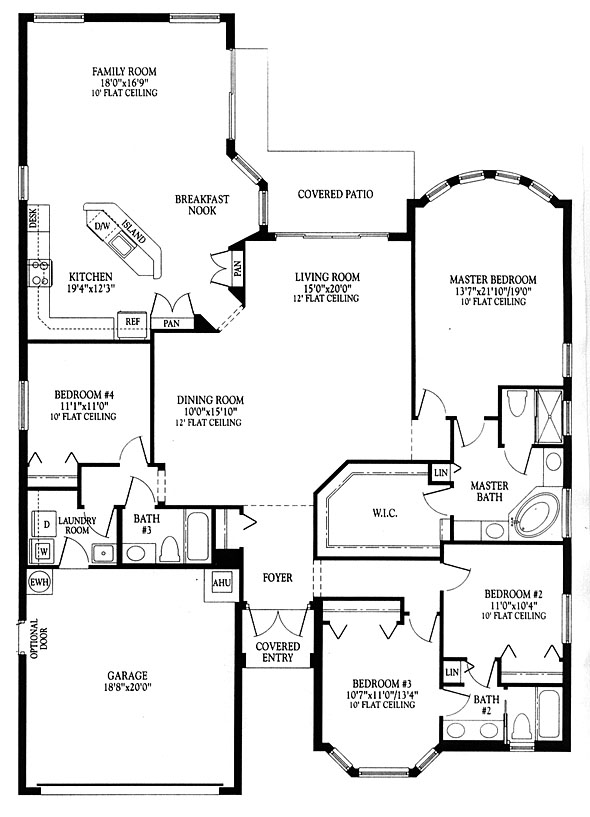 Walk in to a large living/dining space from a wonderful wide entry foyer. 12 foot ceilings add to open feeling as do the sliding glass doors that lead out to the covered patio. Kitchen with island opens to breakfast nook and large family room. Lots of windows make it light, two tall pantries give lots of storage. Master bedroom has dramatic curved window wall. Luxurious bath with EVERYTHING and there is an enormous walk-in closet. Lots of options offered.