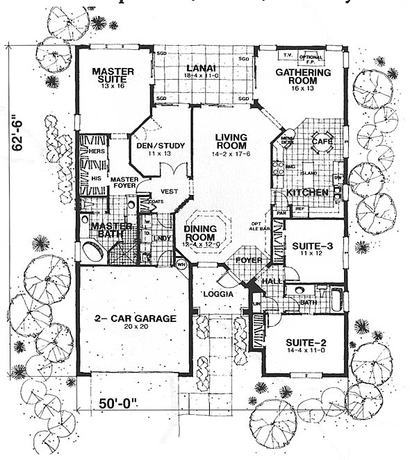 Handsome home with barrel tile roof and brick pavers on driveway and entry. Island shutter an option. Covered loggia brings you into a foyer that takes your eye through the large living room. The dining room goes through the sliding glass doors to the covered lanai. Master suite with study or sitting room close by. Large walk in closets, Roman tub, stall shower, two sink vanities, private we, island style kitchen with eat in area opens to family room. Two other bedrooms and a bath situated for privacy. Lots of spaces...good plan!