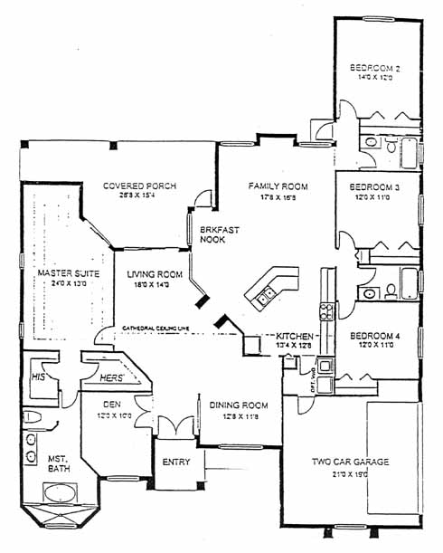 This home has a den and dining room on either side of the foyer entrance. The living room includes access to the covered porch and a cathedral ceiling. The kitchen includes ample counterspace for preparing meals and overlooks the breakfast nook. The family room in the back has a fireplace and is perfect for entertaining guests. The large master suite has a sitting area, his and her walk-in closets and a master bath with double vanity, tub and separate shower. Three more bedrooms and two baths provide plenty of space and privacy for growing kids and visitors. Homes are built 'on your lot' and the pricing shown includes an allowance of $100k for a homesite.
