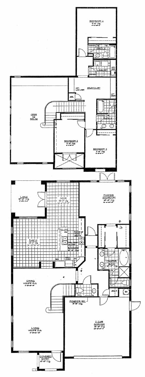 This home features a first-floor master bedroom that includes a walk-in closet and master bath with double vanity, tub and separate shower. Living and dining rooms welcome guests into the home. The family room that follows is perfect for entertaining guests. The kitchen that overlooks the family room includes a pantry and island workspace with double sink. The nook at the back has access to the lanai. The second floor has three bedrooms, including one that makes a nice guest suite with a private bath. The study/loft area is a nice spot for kids to work on homework.
