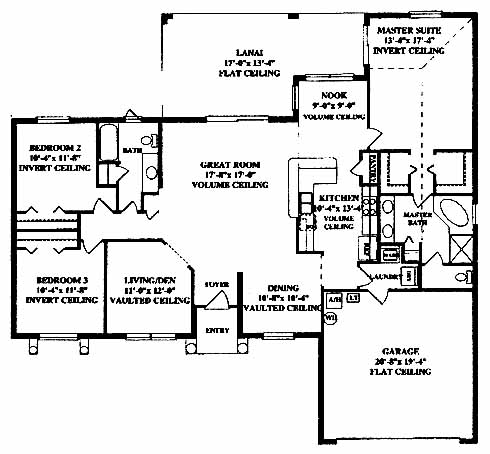This home opens into a spacious great room with lanai access. Formal living and dining rooms with vaulted ceilings are on either side of the foyer entrance. The nearby kitchen has a pantry and ample counterspace for preparing meals while overlooking the nook. The master suite includes his and her walk-in closets, private lanai access and a master bath with double vanity, tub and separate shower. Two more bedrooms on the opposite side of the home share a bath.