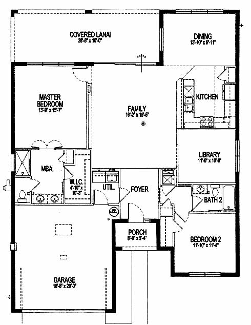 This home features a spacious family room with access to the covered lanai through sliding doors. The nearby library makes a nice home office or reading room. The kitchen with pantry opens into the dining room. The master bedroom includes a walk-in closet and master bath with double vanity. A second bedroom at the front of the home has close access to a bath.