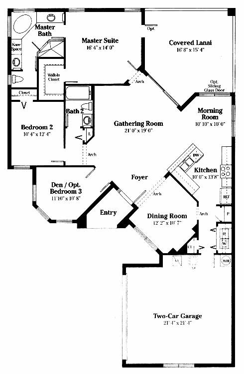 This home has a formal dining room to one side of the foyer entrance. The spacious gathering room is perfect for entertaining guests and includes access to the covered lanai outside. The morning room leads to the kitchen with pantry. The master suite includes a walk-in closet and a master bath with dual vanities on either side of the soaking tub. Two more bedrooms share a bath.