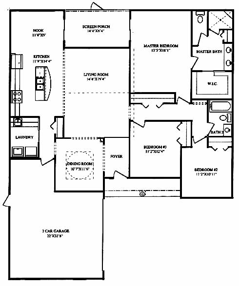 This home features a spacious living room that will allow you to entertain comfortably. The formal dining room at the front overlooks the living room before leading to the open kitchen with pantry and island workspace. The nook in the back has access to the screen porch outside. The large master bedroom includes private porch access, a walk-in closet and a master bath with double vanity, shower and linen closet. Two bedrooms at the front share a bath.