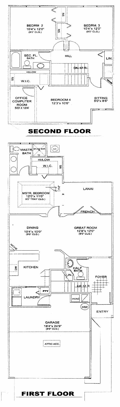 This townhome has a large great room that includes access to the lanai through French doors. The dining room leads to the kitchen with pantry and ample counterspace for preparing meals. The first-floor master bedroom includes a tray ceiling, a walk-in closet and a master bath with double vanity. The second floor has three more bedrooms, including one with a sitting area and private computer room.