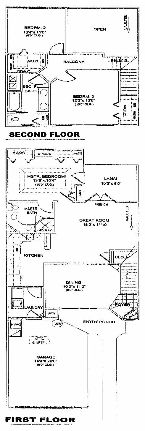 This townhome opens into the dining room. The great room toward the back is a nice area for relaxing on weekends and includes access to the lanai through French doors. The kitchen has plenty of space for preparing meals. The first-floor master bedroom includes his and her closets, a window seat and a master bath with double vanity. The second floor has two more bedrooms and a shared bath.