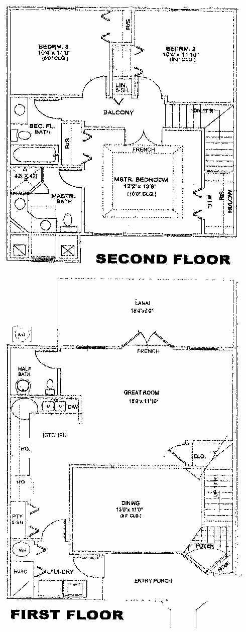 This townhome has an entry porch that welcomes guests to the front door. Once inside, a spacious formal dining room leads you to the great room in the back where you can access the lanai through French doors. The nearby kitchen has ample counterspace and a pantry. The second-floor master bedroom includes a tray ceiling, a walk-in closet and a master bath with double vanity. Two more bedrooms share a bath.