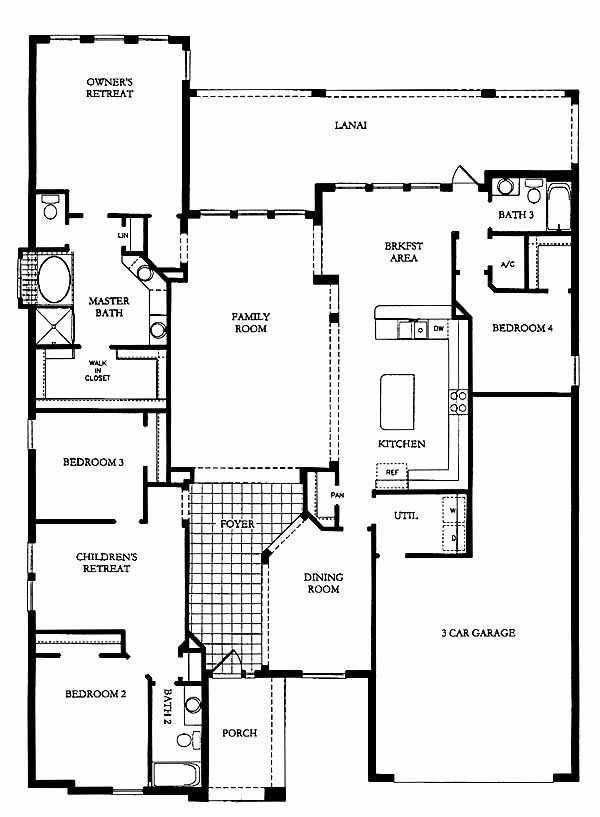 Large tiled foyer leads you to an enormous family room great for entertaining and get togethers. Children's retreat located between second and third bedrooms. Master suite includes huge walk-in closet and private bath with linen closet and double vanity. Kitchen has ample counter space for preparing meals while dinner can be served in the formal dining room and snacks eaten in the breakfast area. Fourth bedroom includes walk-in closet, great for guests.