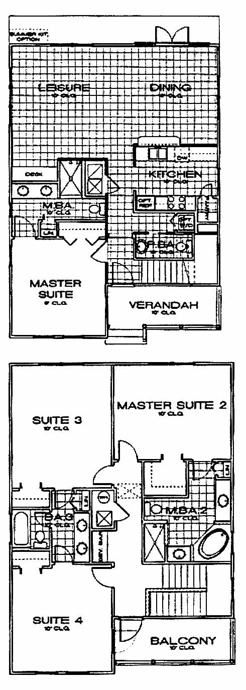 This two-story home includes a nice kitchen with pantry that overlooks the dining room. The leisure room is perfect for entertaining friends and also includes a desk area. The first-floor master suite includes ample closet space and a master bath with double vanity. The second floor has a second master suite with walk-in closet and private bath with dual vanities, soaking tub and separate shower. Two more bedrooms share a Jack-n-Jill bath between them.