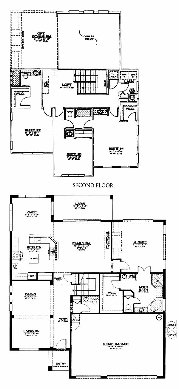 The foyer leads you past the living, dining and powder room to the huge family room and open kitchen with island and cafe area. The family room with optional fireplace and media center opens to the gorgeous lanai and also access's the master suite with optional medias center and master bath with massive walk-in closet. Upstairs you have the 2nd suite with walk-in closet and bathroom, 3rd and 4th suite with Jack and Jill bathroom and laundry room. This home also offers and upstairs bonus room with optional entertainment center.