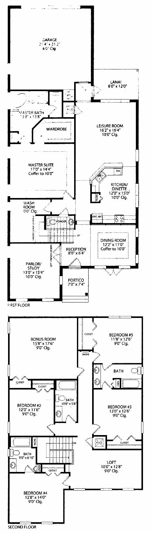 This home has a beautiful study that makes a nice office to one side of the foyer entrance. The formal dining room is to the other side. The kitchen with pantry overlooks the leisure room with lanai access. The first-floor master suite includes a wardrobe closet and master bath with double vanity, soaking tub and separate shower. The second floor has three more bedrooms, including one with a private bath. The loft is a good location for a play room or fitness area.