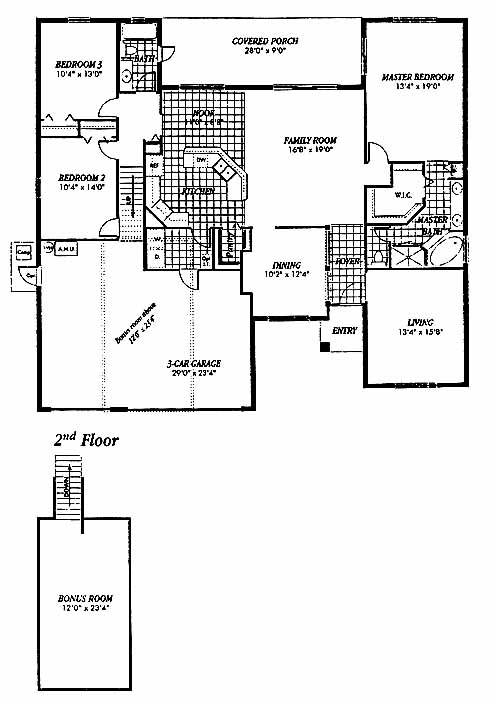 This home has a formal dining room to one side of the foyer entrance. The family room is a nice spot for entertaining guests and includes access to the covered porch. The nook leads to the kitchen with walk-in pantry and ample counterspace for preparing meals. The master bedroom includes an oversized walk-in closet and a master bath with double vanity, tub and separate shower. Two more bedrooms share a bath. The second-floor bonus room makes a great home office or fitness area.