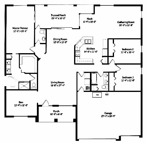 This home has a den to one side of the foyer entrance that makes a great office. The living room is a nice spot for entertaining guests while leading to the dining room in the back with porch access. The kitchen has a pantry and ample counterspace for preparing meals while overlooking the nook. The gathering room is a great location for relaxing on the weekend. Two bedrooms nearby share a bath. The master retreat on the other side of the home includes a walk-in closet and master bath with double vanity, tub and separate shower.