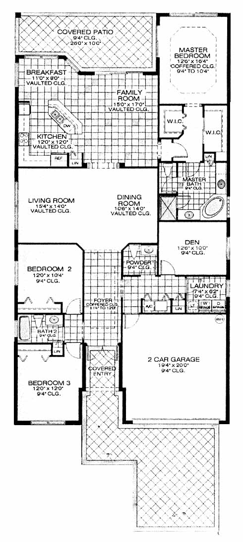 This home has two bedrooms and a shared bath to one side of the foyer entrance. The den makes for a nice home office. Living and dining rooms lead to the family room where entertaining guests will be enjoyable. The kitchen nearby includes a pantry and opens into the breakfast area. The covered patio is accessible from the family room. The master bedroom includes his and her walk-in closets and a master bath with garden tub and separate shower.