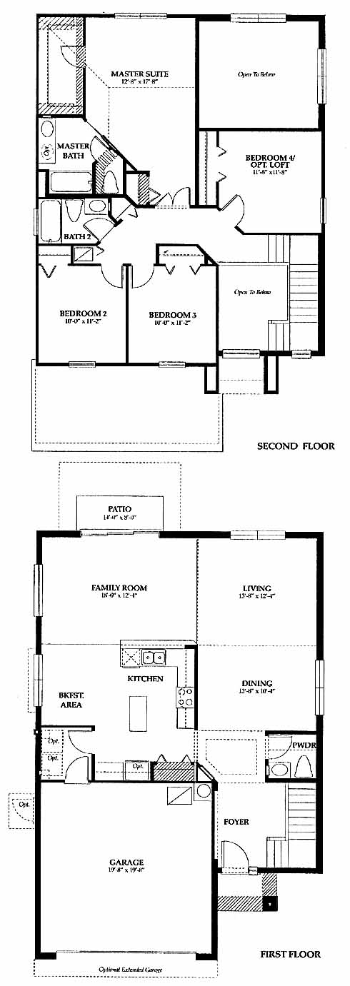 This two-story home has large dining, living and family rooms that give a spacious feel to the design. The kitchen includes an island workspace, pantry and opens into the breakfast area. The family room has access to the patio outside. The second floor has all four bedrooms including the master suite with walk-in closet and private bath. Three more bedrooms share a large bath.