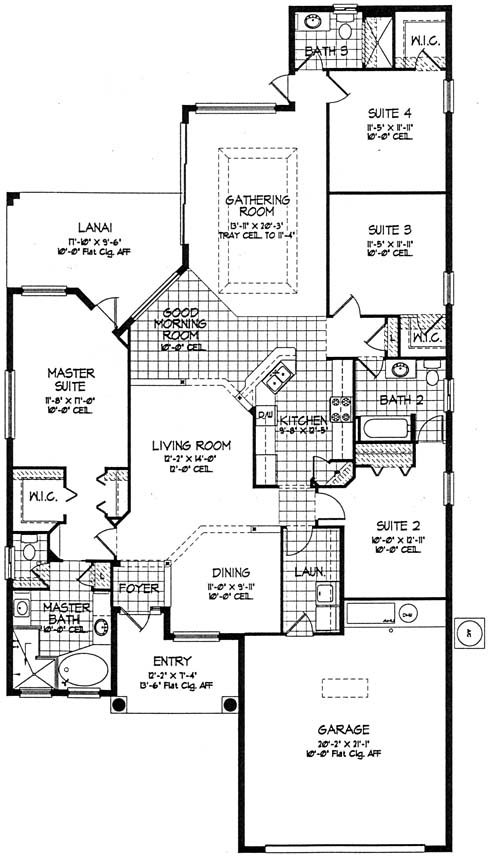 This home has a large gathering room at the back that is perfect for relaxing on weekends or entertaining guests. The kitchen includes a walk-in pantry and ample workspace. Eat meals in either the good morning room or the dining room. The master suite includes private access to the home, a walk-in closet and master bath with tub and separate shower. Two more bedrooms share a bath between them.