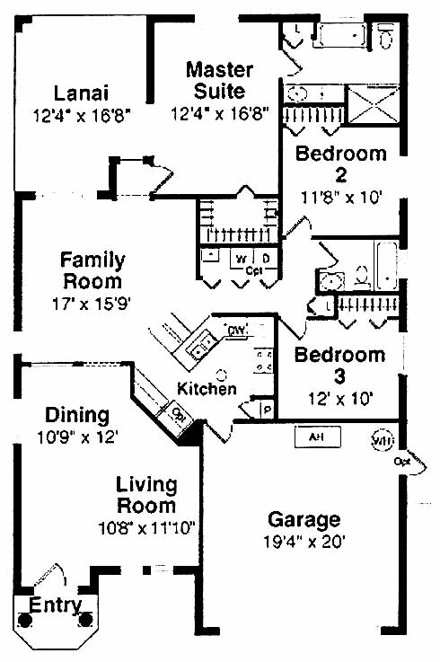 Living and dining rooms at the foyer entrance welcome guests inside. The family room with lanai access is a nice spot for entertaining guests. The nearby kitchen has a pantry and ample counterspace for preparing meals. The master suite in the back includes a walk-in closet and master bath. Two more bedrooms share a bath between them and have close access to the laundry room.