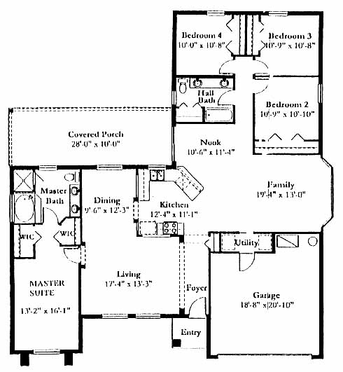 This home features a centrally located kitchen that includes ample counter space for preparing meals while overlooking the nook with access to the covered back porch. The family room is a nice area to entertain guests and includes a bay window. The living room to one side of the foyer leads to the dining room. The master suite includes his and her walk-in closets and a private bath with double vanity, garden tub and separate shower. Three more bedrooms share a bath. Price shown is reflective of builders base price and includes the median price for a standard home-site. Additional upgrades, options and premium home-sites may be available at additional cost.