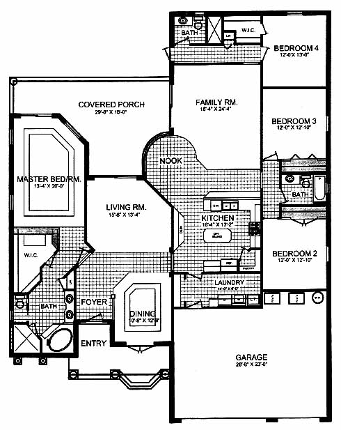 This home includes formal dining and living rooms at the foyer entrance. The nook leads to the spacious kitchen with walk-in pantry, desk area and optional island workspace. The family room in the back has access to the covered porch and makes a nice spot for entertaining guests. The large master bedroom includes a walk-in closet, private access to the porch and a luxurious master bath with double vanity, tub and separate shower. Three more bedrooms and two baths allow for maximum privacy.